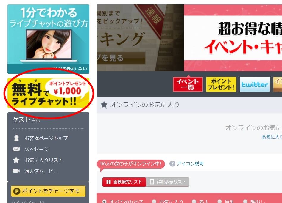 1000円分の無料ポイントを利用してお気に入りのAV女優の生ライブチャットを体験(*´∀`)