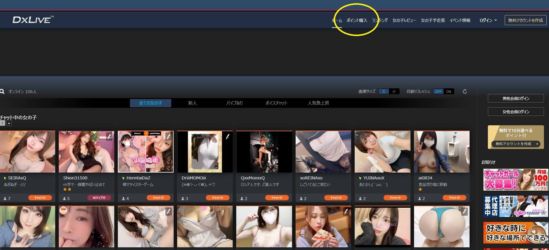 ①必ず、上記リンクから公式サイトへ移行してください。ポイント購入をクリック(タップ)します。